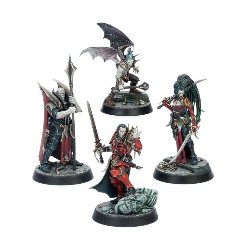 – 4x figurines de la Cour Écarlate – Duvalle, Gorath, Vellas, et Ennias