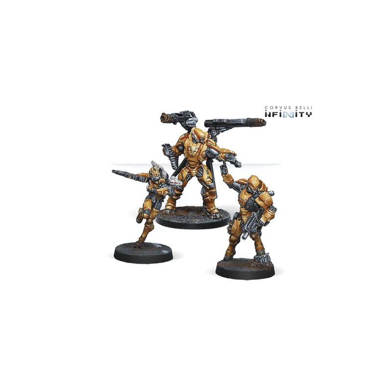 Cette boîte contient 3 figurines pour Yu Jing : 1 Yān Huǒ avec des Lance-missiles, 1 Zuyong avec un Fusil MULTI et 1 Soldat Tigre Hacker. Avec cette boîte, vous pouvez élargir vos options lors de la création d'une liste d'armée et poursuivre la collection de Yu Jing que vous avez commencée avec Operation : Kaldstrøm.