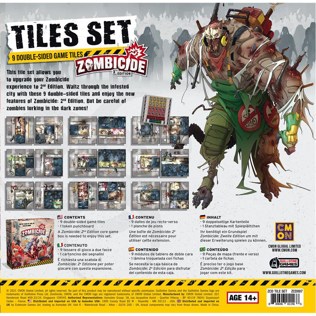 Description du produitUn pack de 9 dalles recto-verso de terrain pour Zombicide. Ces dalles sont celles que l’on trouve dans la boîte de base de la seconde édition de Zombicide. Elles peuvent être utilisées tout simplement pour agrandir votre terrain d’exploration pour des scénarios encore plus délirants, ou bien pour bénéficier des nouveaux terrains avec votre ancienne boîte de Zombicide.
