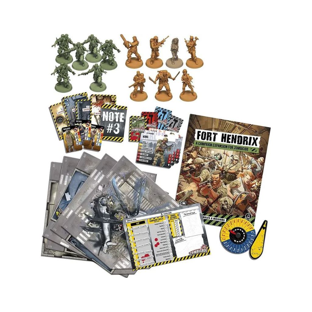Fort Hendrix est une extension pour Zombicide 2ème édition ajoutant de nombreux éléments au jeu, notamment de nouveaux survivants et de nouvelles règles avancées. Il vous permet surtout de jouer une campagne avec 10 scénarios liés les uns aux autres.