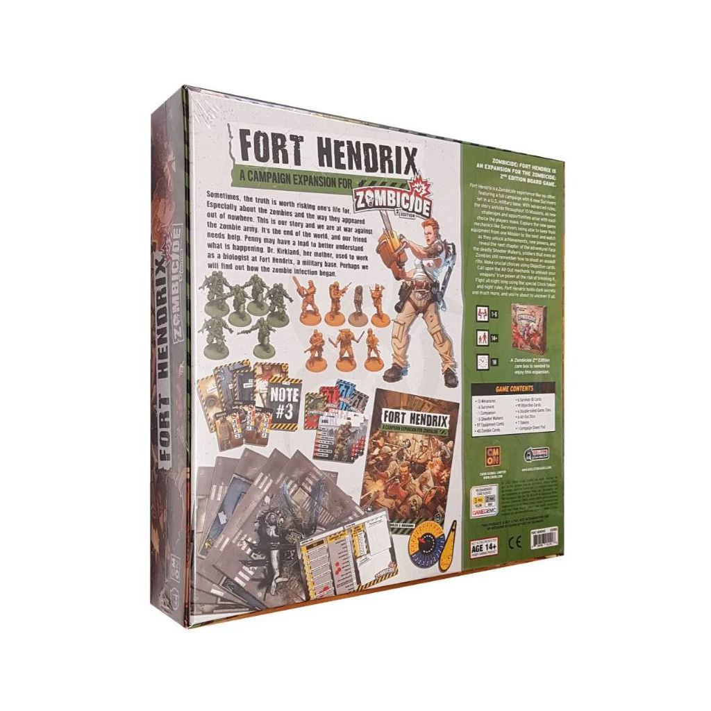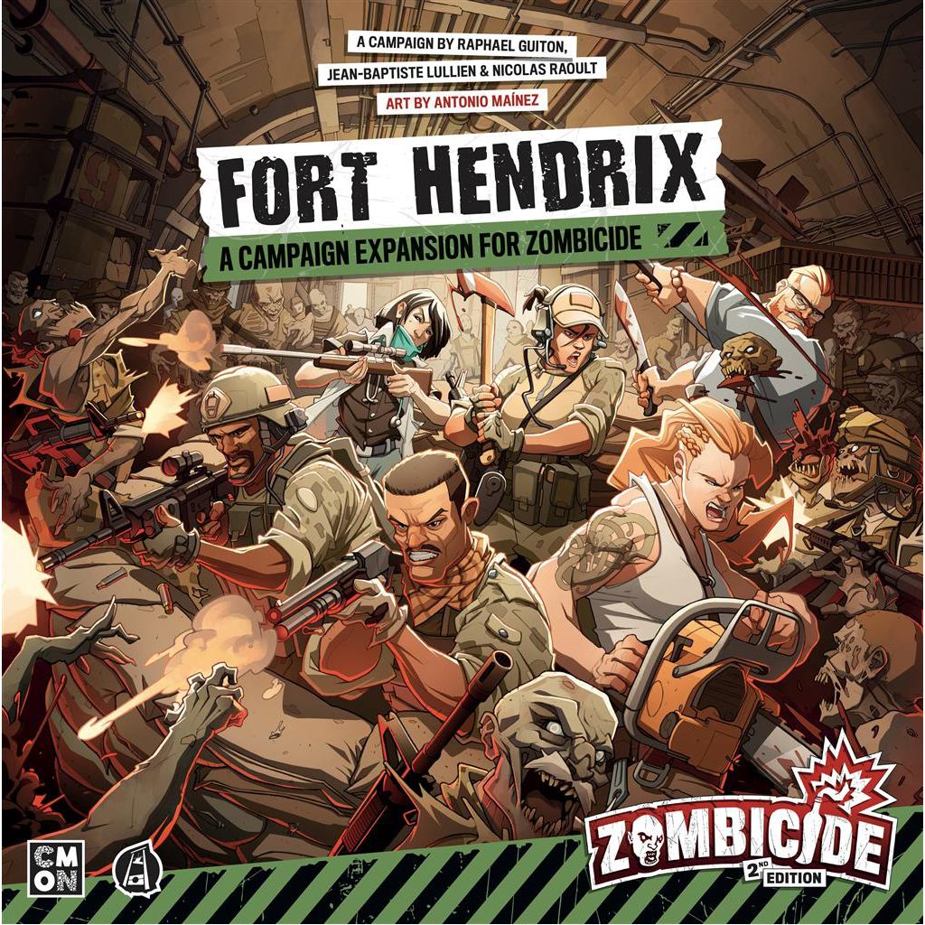 Fort Hendrix est une nouvelle extension pour Zombicide 2ème édition. Elle ajoute de nombreux éléments au jeu, notamment de nouveaux survivants, le nouveau zombie tireur, de nouvelles règles avancées comme celles du jour et de la nuit, ainsi qu'une campagne de 10 missions. Les survivants gagneront en expérience au fur et à mesure qu'ils avanceront dans le jeu, devenant ainsi plus aptes à affronter la menace zombie tout en faisant la lumière sur ce qui s'est passé à la base.
